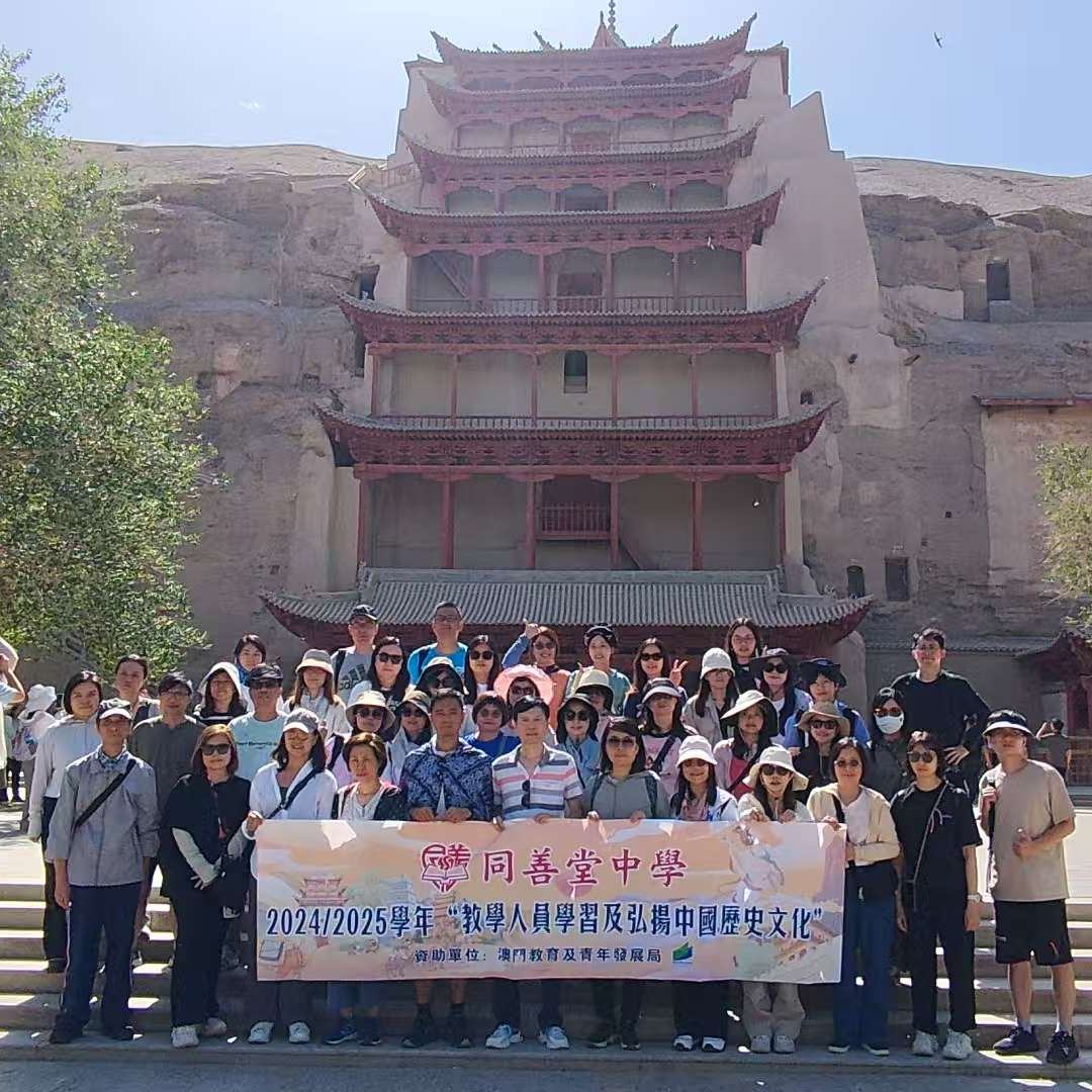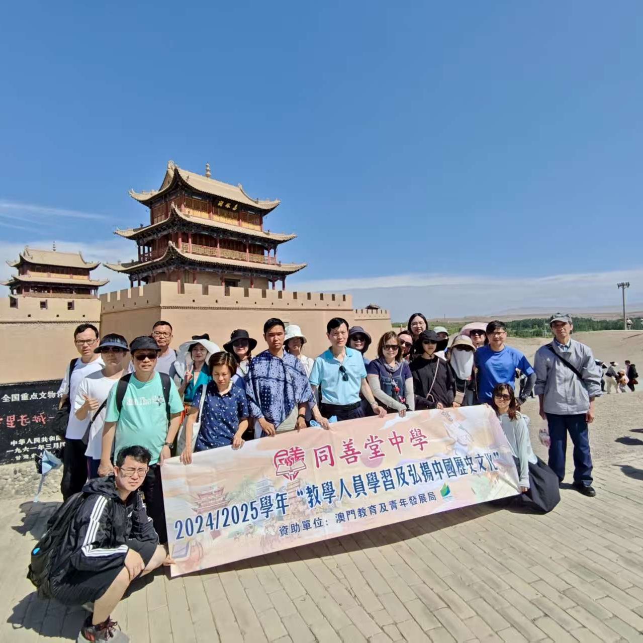 為進一步推動中華優秀傳統文化進入校園,提升教師的人文素養與教學內涵,在教育基金資助下,同善堂中學組織中、小、幼教學人員於2025年7月15日至19日赴甘肅省開展為期五天的文化學習之旅。行程沿著古絲綢之路,實地參觀蘭州、敦煌、嘉峪關、張掖等地的歷史文化景點,深入感受中華文明的厚重底蘊與多元風貌。
