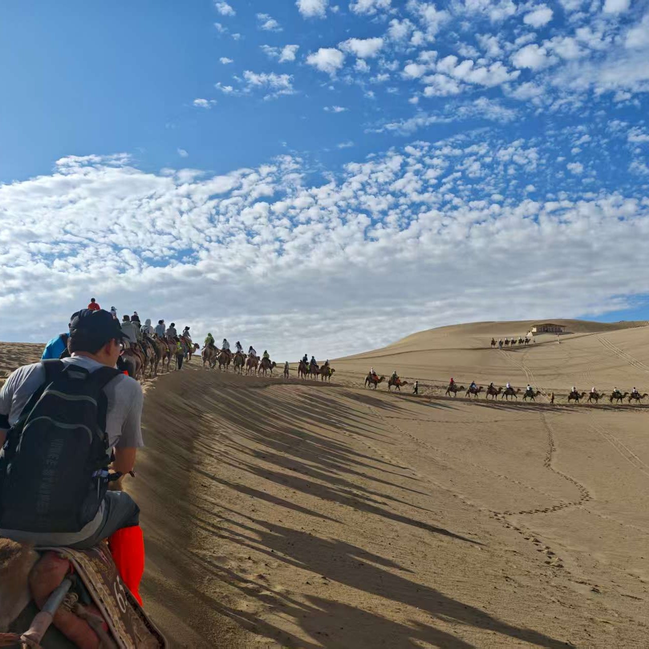 在敦煌,教師們深入莫高窟,在導賞員的講解下參觀八個洞窟,一覽千年佛教壁畫與雕塑藝術之美,並駐足於郭沫若題寫的「莫高窟」牌坊前,感受歷代文化保護的精神傳承。教師們亦於鳴沙山騎駱駝穿越沙丘,欣賞到月牙泉與沙漠共生的奇觀,親身體驗了西北沙漠風光的雄奇壯麗,深刻體會古代絲路旅程的艱辛與堅韌。