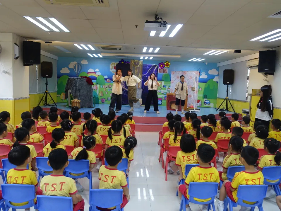 因此,本校部參與了由教育及青年發展局主辦的“性教育巡迴話劇”。日前,該劇團到訪為本校幼高班學生進行一場極具趣味性的話劇表演。