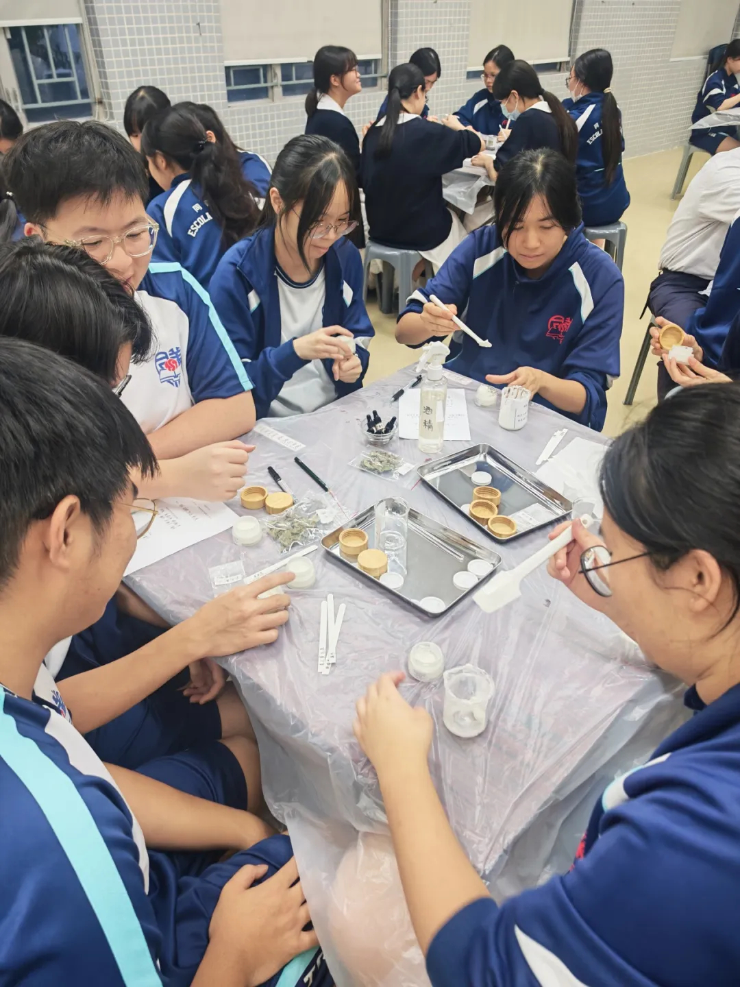 為關懷學生身心健康,我校與中醫生合作,於11月7日舉辦「中藥舒壓護手霜工作坊」。董醫生帶領同學了解薄荷、廣藿香、迷迭香等香氣藥材對人體精氣神的功效。在醫生指導下,同學們成功製作出含有中草藥成分的護手霜,并帶回家與家長一起分享,十分高興!