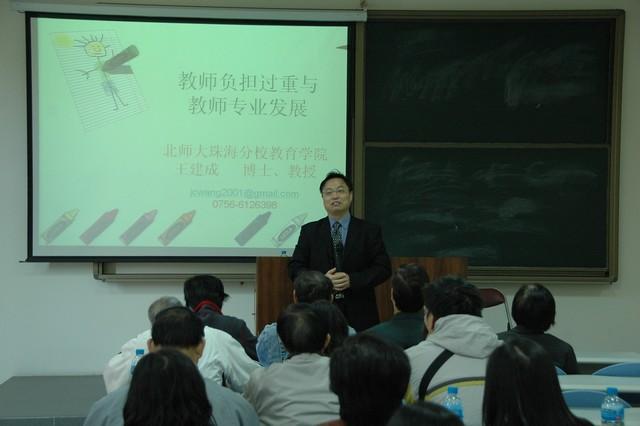 這次講座主題分為三個部分,分別是“教師負擔過重”,“教師專業發展的內涵、知識基礎與基本階段”及“教師專業發展與克服工作負擔過重”。首先,王教授提 到教師負擔過重的主要原因由於教師的工作任務、個人發展、學校管理及社會環境形成,繼而引出了教師專業發展是解決教師負擔過重問題的重要途徑,並重視教師 實踐性知識的意義,使學校教師獲益良多。