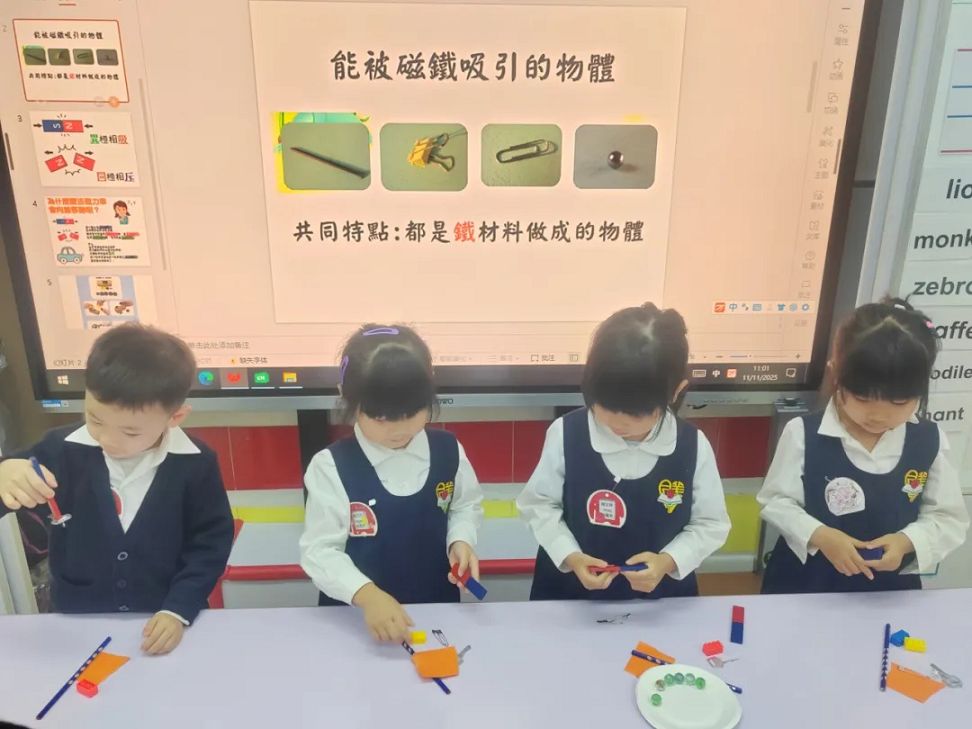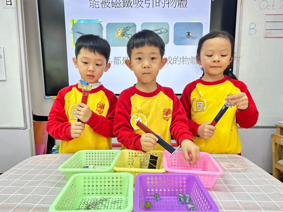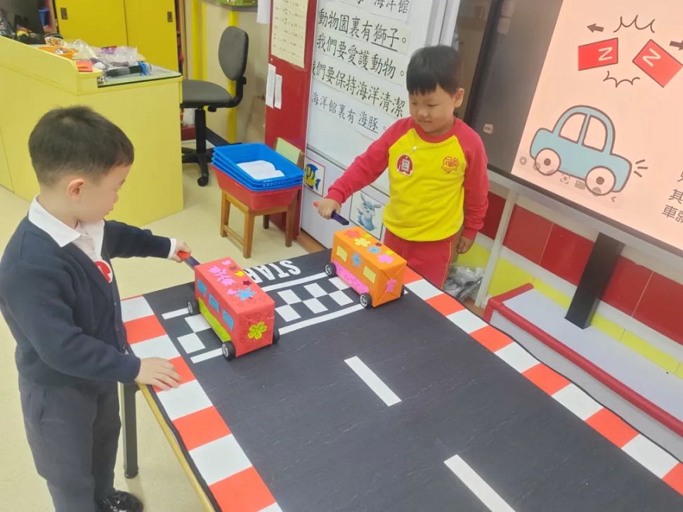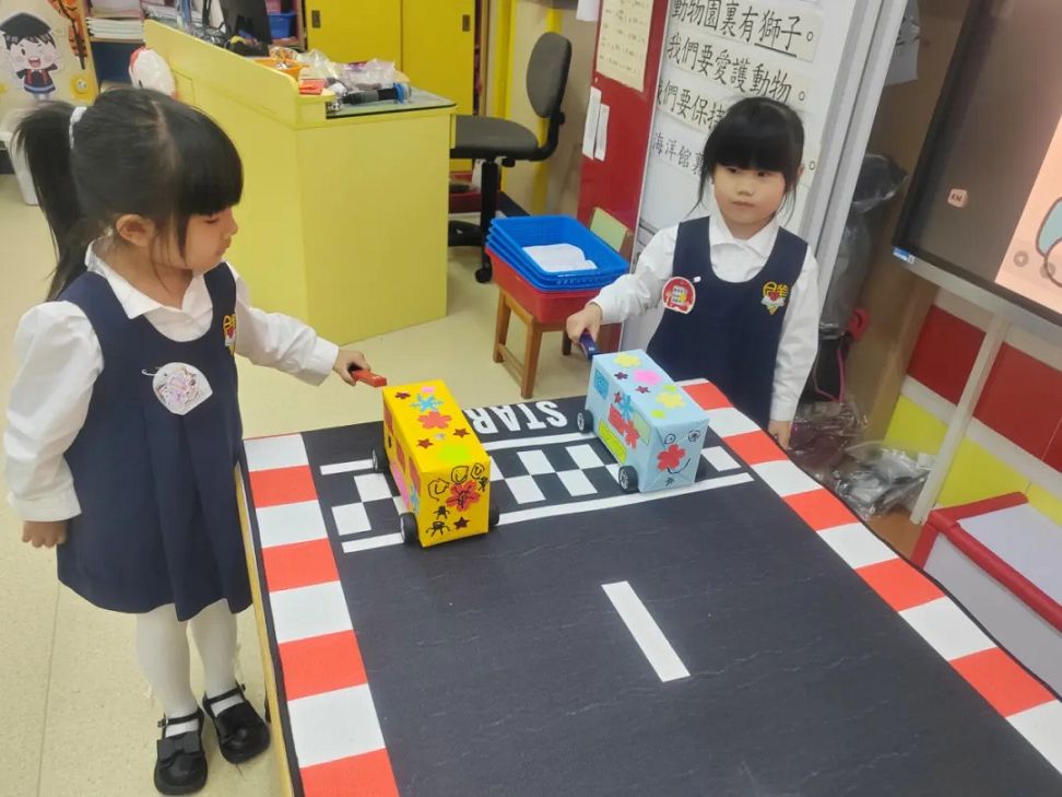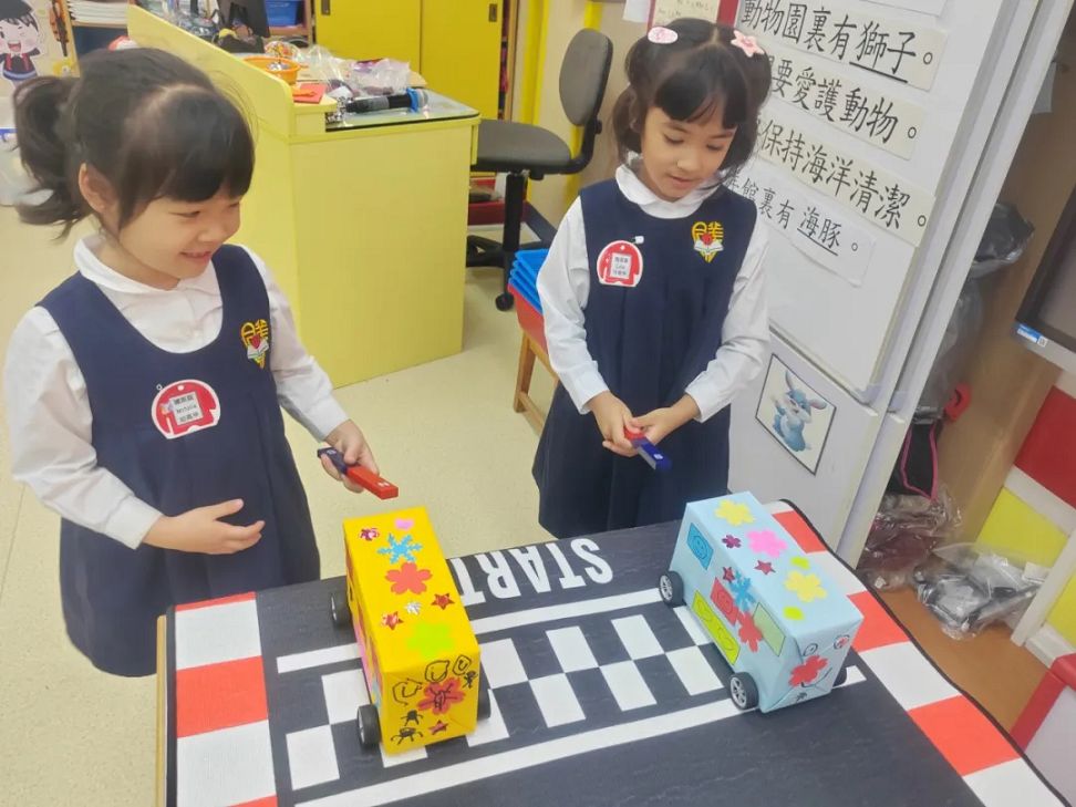 課堂上,老師利用他們自製的磁力車以深入淺出的方式,讓小朋友能發現只要將磁石與磁力車正確地排列好,磁力“吸”和“斥”的作用便會使車子有前進或後退的效果,彷彿有一雙「隱形的手」在幫忙。