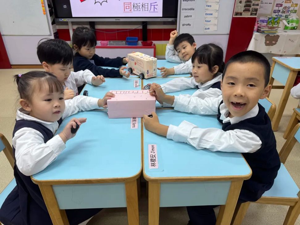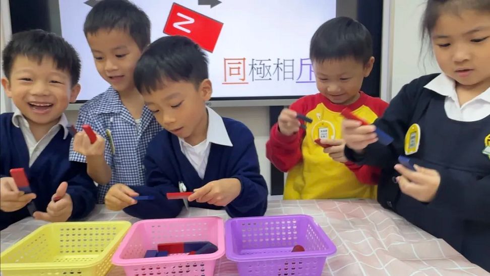 磁石是一塊很神奇的石頭,利用它製作磁力車更是一項有趣的科學體驗。近日同善堂中學附屬幼稚園K3的小朋友學習“同極相斥、異極相吸”的原理。