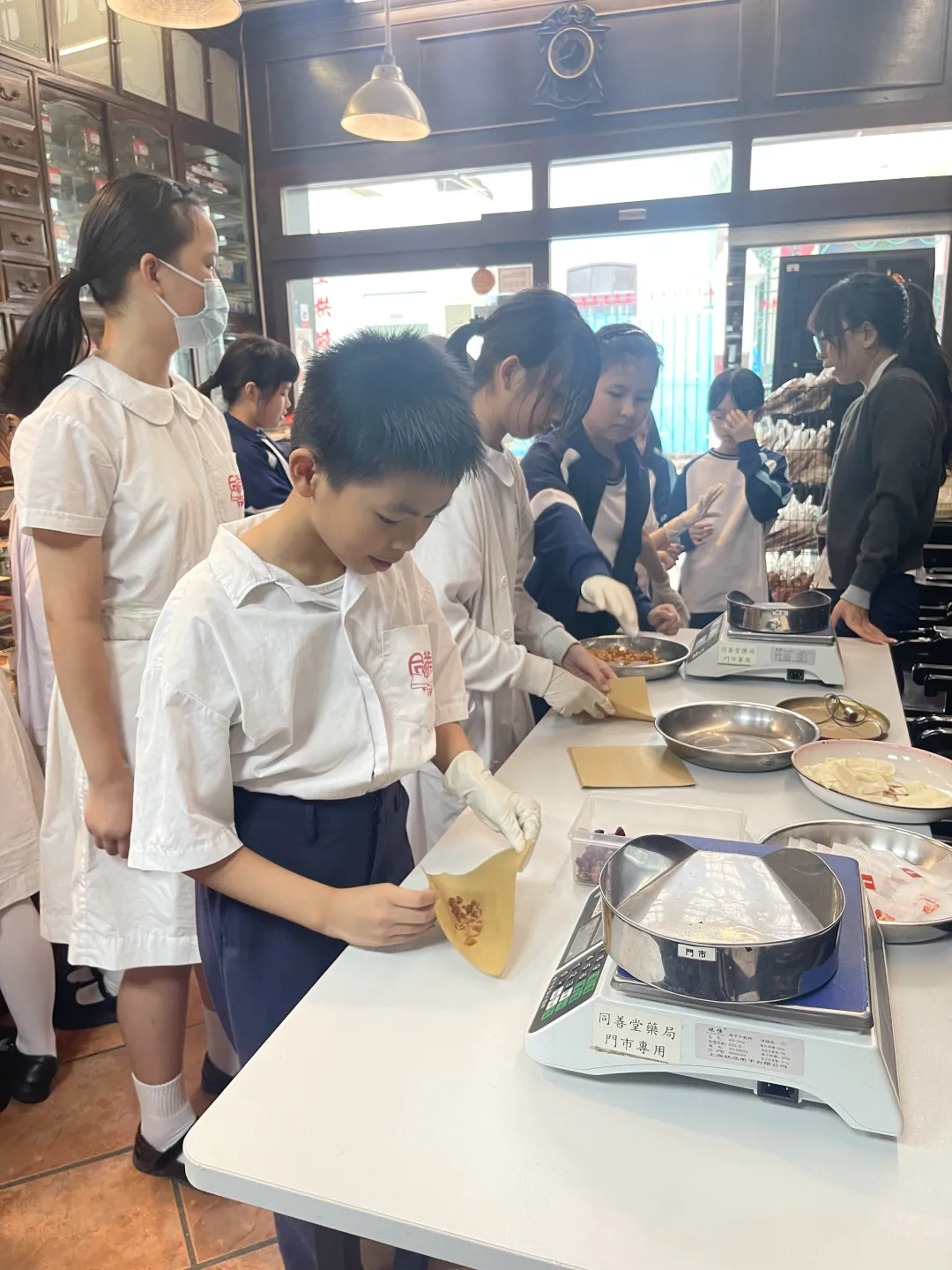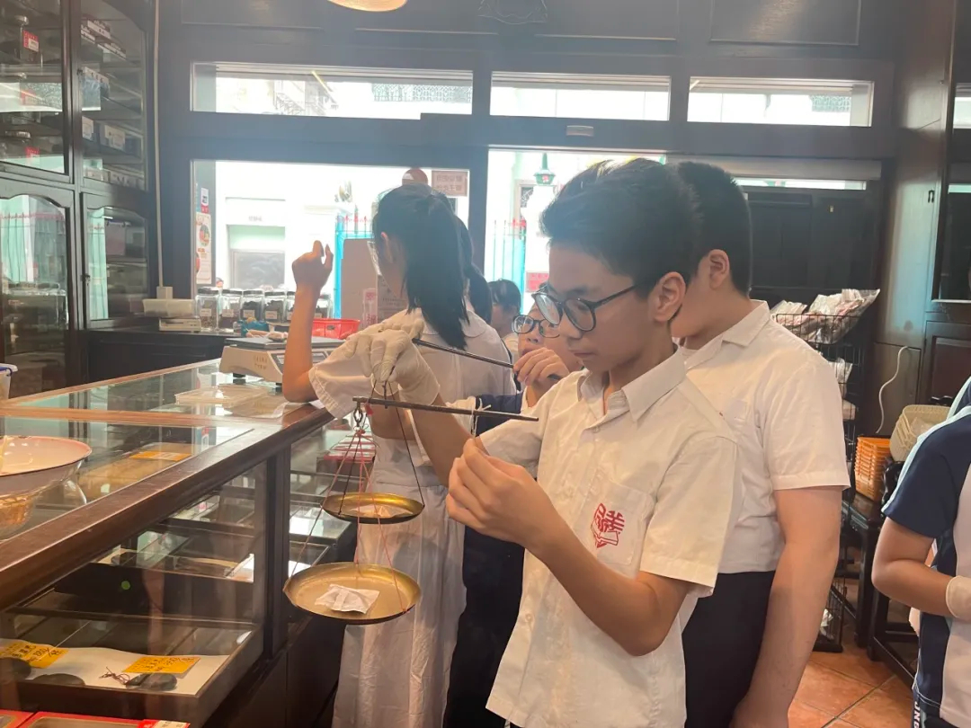 活動的高潮是「動手秤藥」。同學們在工作人員的指導下,學習使用傳統戥秤,認識「分」、「厘」等中藥計量單位。這一次,他們不是旁觀者,而是小小藥師,需要為自己精準配製一款養生茶。