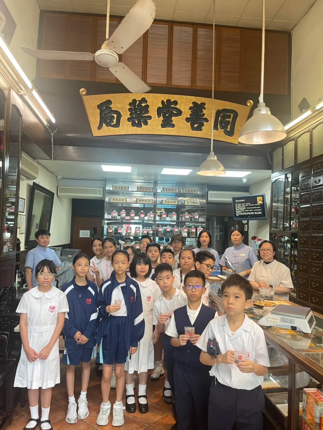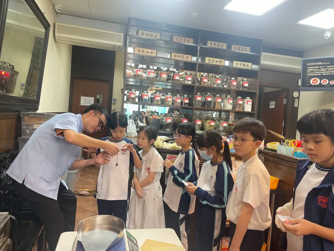 2025年10月21日中午,同善堂中學小學部「中醫藥趣味學堂」的五、六年級學員,在老師的帶領下,步行前往同善堂藥局,展開一場融合藥香、甘甜與動手樂趣的中醫藥文化深度體驗。