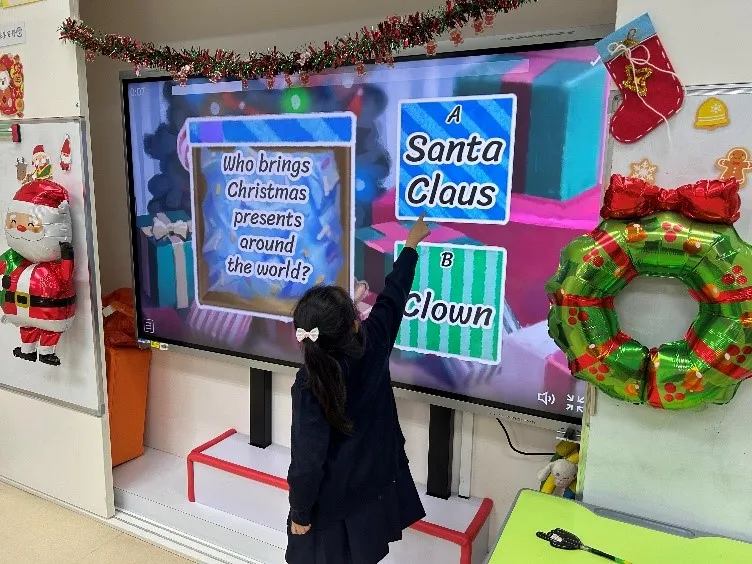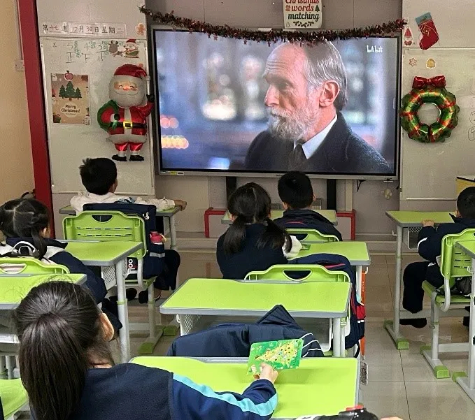 孩子們在老師的帶領下,一起觀賞了溫馨有趣的聖誕電影,並參與了聖誕主題小遊戲,課室裏充滿稚嫩的歡笑與專注的眼神。